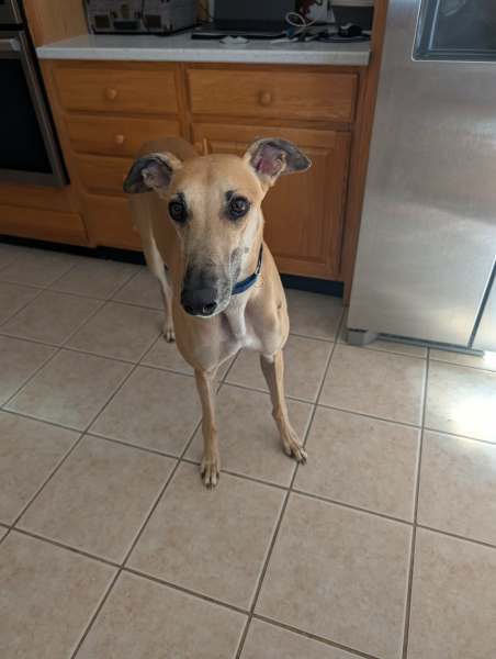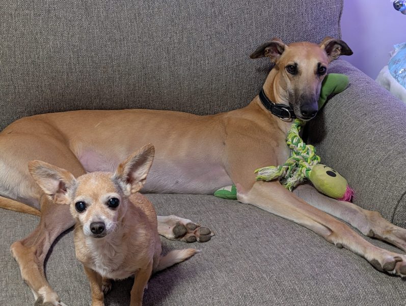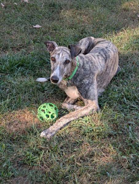 Ollie loves other greyhounds and would do best with other friends to play and hang with, he loves to run with others and show off how fast he is. He also is really chill around other small dogs…he’s a friend to all.