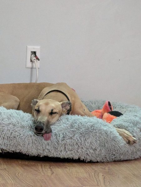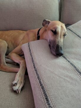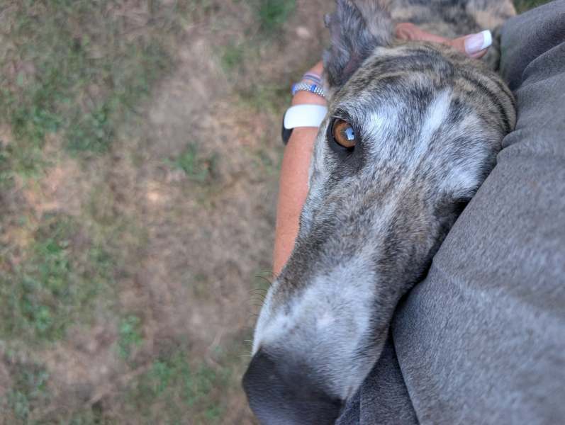 If you are looking for the absolute love bug it’s Ollie! He is devoted to his people and loves nothing more than being by your side…if you ever heard of a velcro Greyhound, Ollie definitely has that box checked, he just wants to stay close and show you that he is full of love.